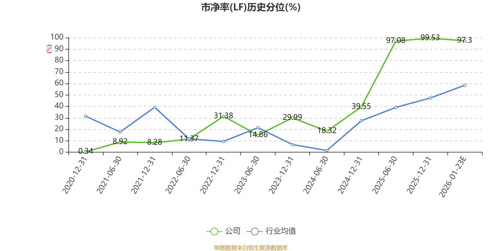 市盈率、市净率为负时开云体育,不涌现当期分位数,会导致折线图中断。