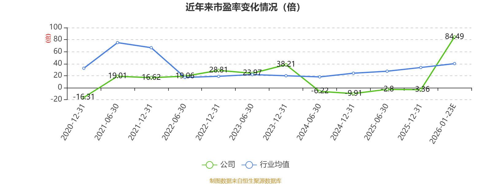 中证智能财讯 *ST熊猫(600599)1月23日晚间清楚2025年度功绩预报,预测2025年结束营业收入2.1亿元至2.6亿元;归母净利润1400万元至2100万元,上年同时蚀本4.74亿元;扣非净利润预测1100万元至1650万元,上年同时蚀本4.81亿元。以1月23日收盘价缱绻,*ST熊猫当今市盈率(TTM)约为67.59倍-101.38倍,市净率(LF)约12.24倍,市销率(TTM)约6.04倍。 以本次清楚功绩预报均值缱绻,公司连年市盈率(TTM)图如下所示: 贵府涌现,公司主营业