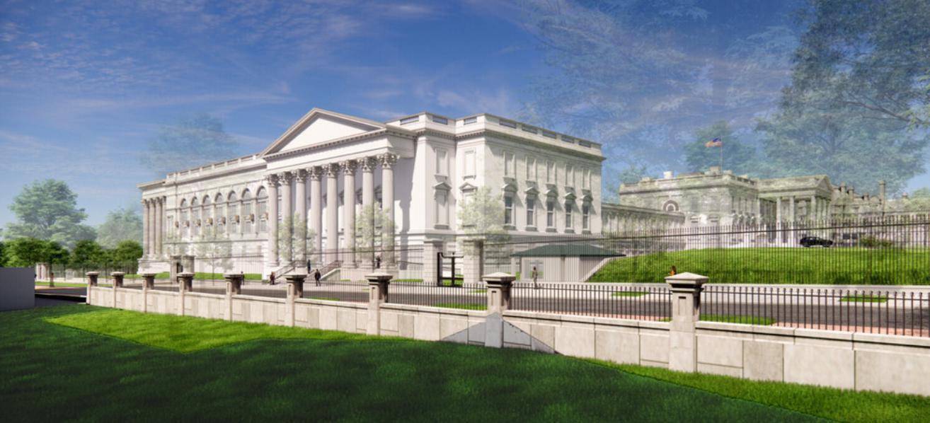 白宫在2025年7月底公布了饮宴厅改造形式,同庚10月,特朗普政府铲除白宫东翼,为建造饮宴厅腾出空间,此举遭到历史古迹保护组织的反对。