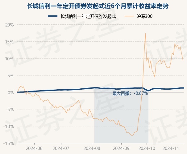 本站讯息云开体育,11月15日,长城信利一年定开债券发起式最新单元净值为1.0249元,累计净值为1.0874元,较前一交游日高涨0.0%。历史数据领路该基金近1个月高涨0.26%,近3个月高涨0.14%,近6个月高涨1.27%,近1年高涨4.09%。该基金近6个月的累计收益率走势如下图: